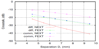 單端FEXTNEXT隨著間距增大而變?nèi)酢?/span>