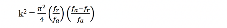 其中k 2是耦合系數(shù),f r  是諧振頻率,而f a 是反諧振頻率。