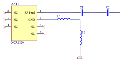 NCP.5820 NB-IoT天線模塊的示意圖符號