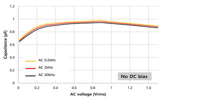 3.交流電壓電平會影響未施加直流偏置的有效電容,如下圖所示。